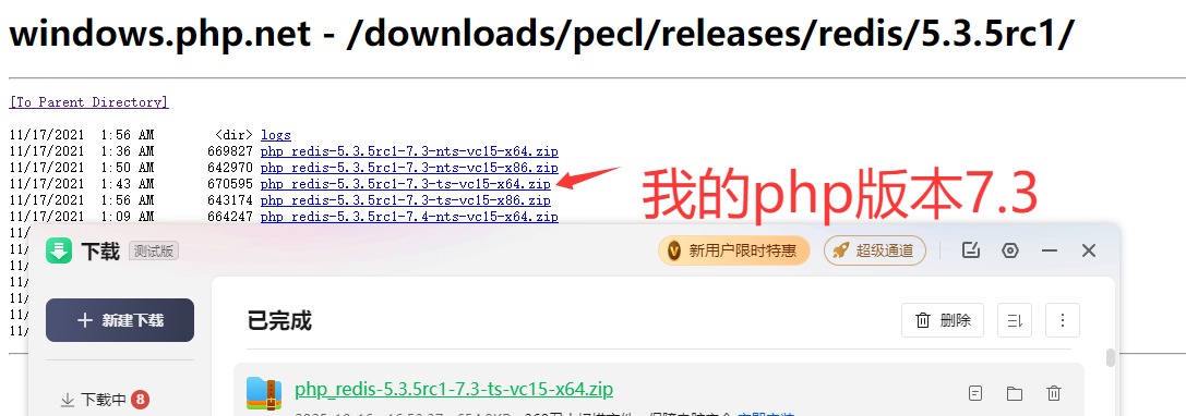 Redis扩展下载地址:https://windows.php.net/downloads/pecl/releases/redis/